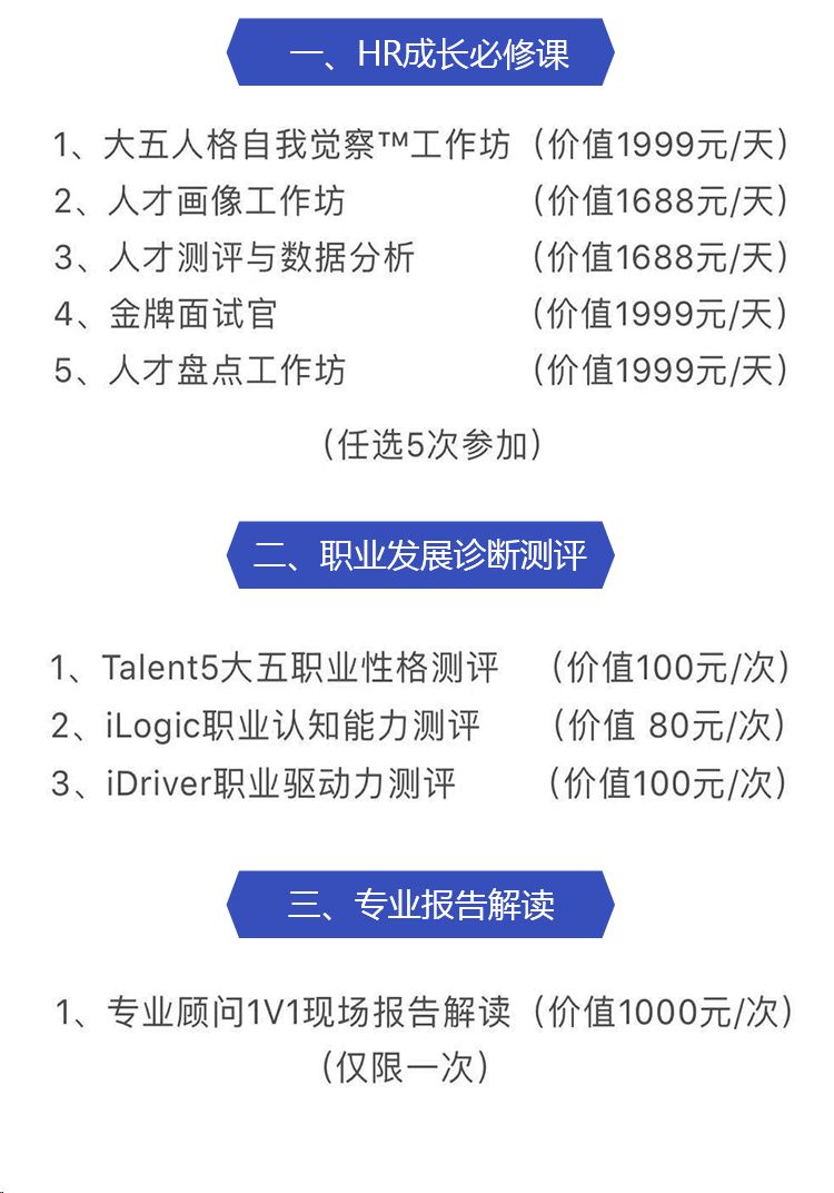 现在报名还可享受特惠打包价,五大精品课程任君选择,还附赠职业发展诊断测评和一对一报告解读哦!具体内容如下: