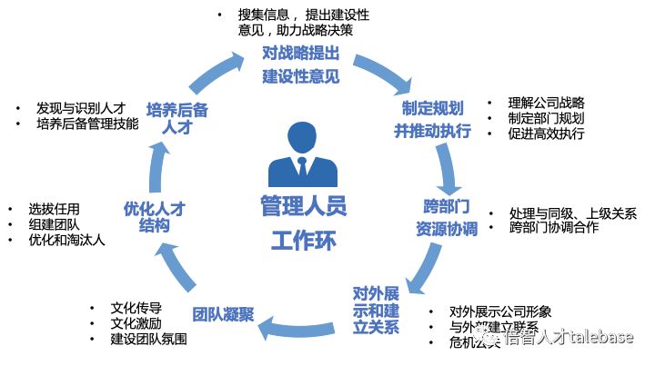 倍智通过对管理人员的岗位职责分析、工作分析,及具体的绩效访谈和总结,得出管理人员的7大关键挑战(工作环)。