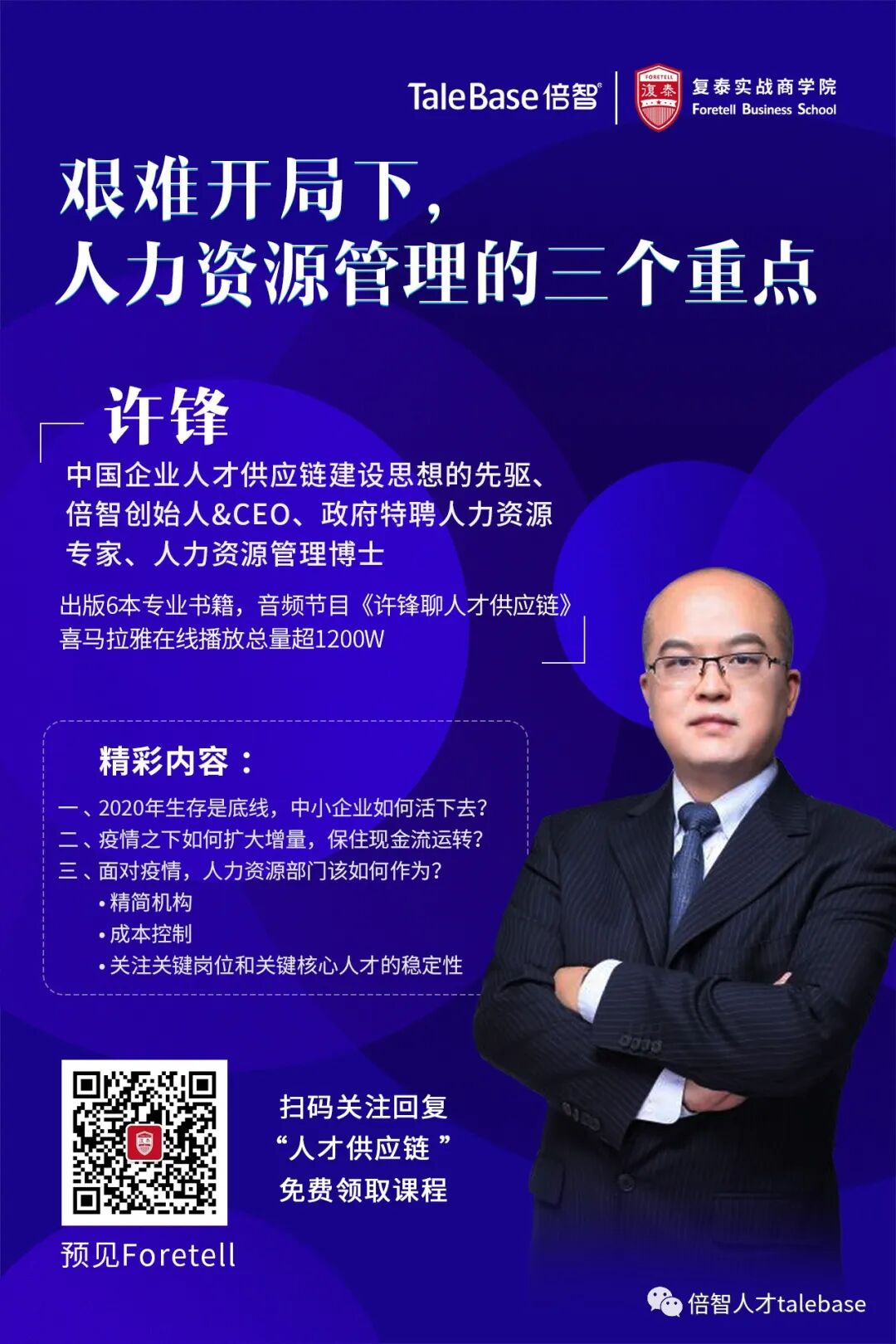 2020年艰难开局,新型冠状病毒席卷全国,在这样的状况下,企业人力资源管理有何关键举措?许锋博士总结出以下三点建议,给大家提供一些思考和方向。