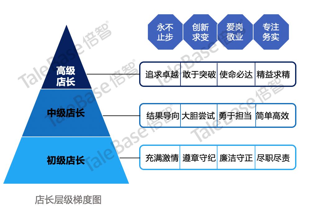 因此倍智配合安踏将把店长划分初、中、高三个层级,层级越高对店长的能力要求越高。