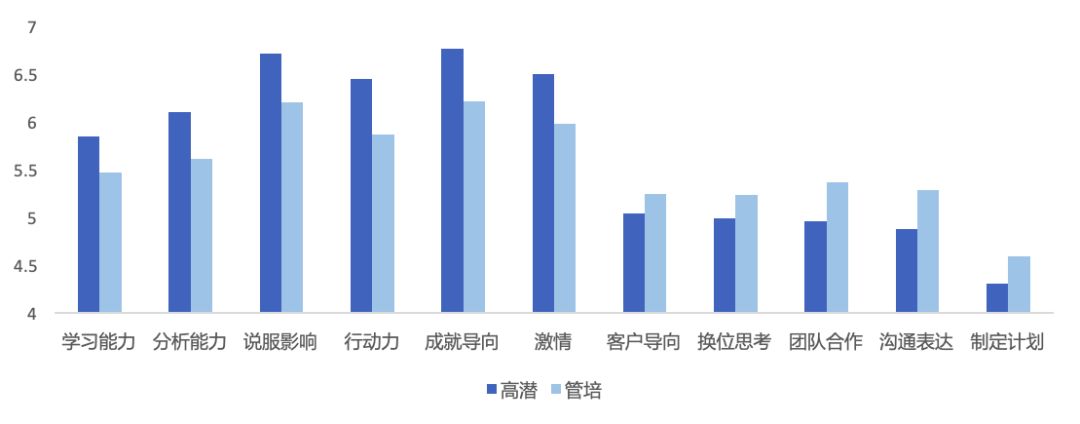 因此,倍智配合安踏,在安途生的培养上做了大量数据分析工作。在他们工作一段时间之后,将完成由倍智提供的“大五人格职业性格测试”,测试结果会链接到每一位安途生的能力项,并会将高潜安途生与普通安途生做数据对比。