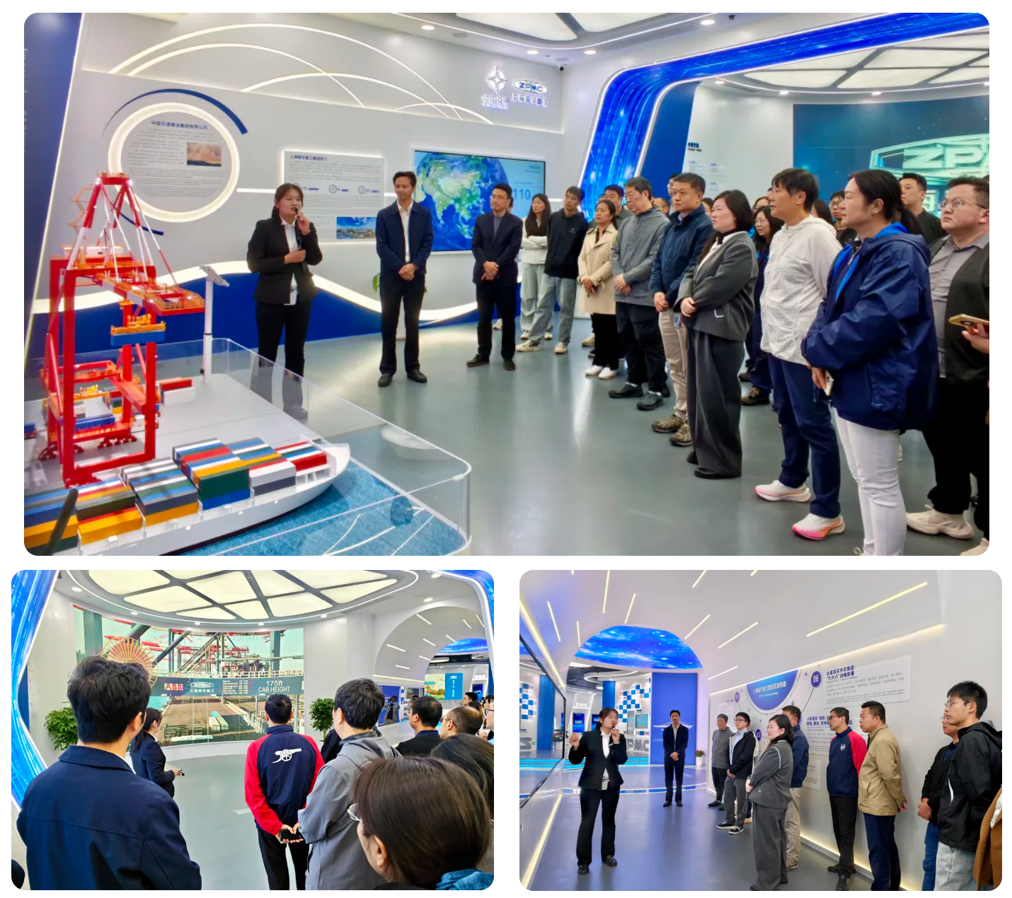 来自上海城投水务集团、上海振华重工集团、中交第三航务工程局、中交西筑公司、上海市浦东新区技师协会会员单位的众多领导及专家受邀出席,上海振华重工集团长兴分公司党委副书记、工会主席、纪委书记严峰带领大家参观了数字化展示中心和红色教育基地,共同开启了这场现场技术交流圆桌会议。