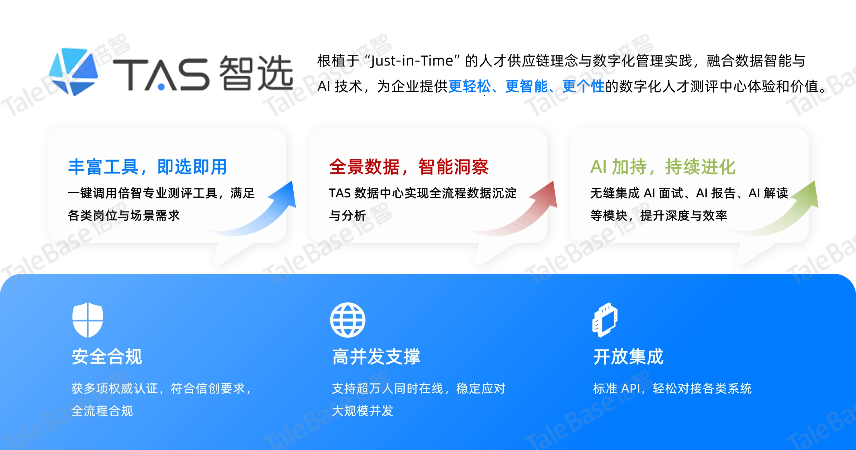 技术底座:“TAS智选”一站式人才评价平台,它确保了从测评、AI面试到数据沉淀的全流程精准、高效、可追溯: